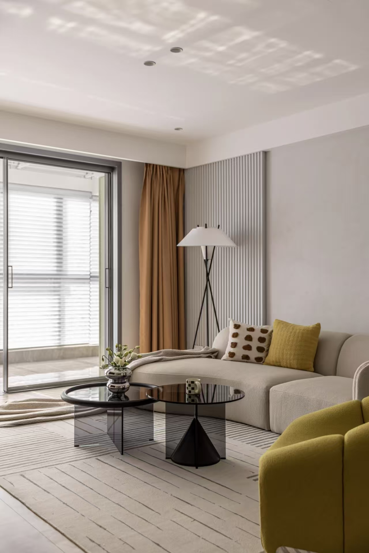 温馨到骨子里的客厅设计,自然感的暖灰系艺术涂料墙面,在此基调上配以同色系的栅格板,起到装饰过渡的效果,线条简洁,收纳满分,大面积运用暖白与原木,搭配浅草绿,趣味黄温柔配色,突出温馨且有格调的居家氛围, 客厅空间有着完美的统一序列感,无主灯设计,艺术涂料代替踢脚线,让空间自上而下流畅一体,极简舒适的沙发,精致简约的玻璃茶几,单人个性座椅,无一不是客厅的视觉亮点 巧用镜面设计的餐厅空间,视觉感受增加一倍,餐桌上方原始结构梁,通过镜面不锈钢包裹处理,无形中延伸立面空间, 餐厅一大亮点设计,就是依窗的榻榻米,满足居住需求的同时,设计师减少房间对整体布局的分割,把自然光线充足的空间,设计成可以休闲,休憩的榻榻米墙面浑然一体的弧形置物架, 通透明亮的厨房设计,细框长虹玻璃门,勾勒出有力的线条,通透的玻璃材质将外部采光,很好地引入室内,淡雅浅草绿柜体满足厨房收纳,也带给厨房空间温柔的气息,白灰花砖配搭,增添几分精致感 重新定义从卫生间独立出来的干区,让原本无自然采光的干区变得通透,为空间注入全新的材质结构。 暖灰和粉橙色碰撞,营造轻柔美好的休憩氛围,利落的线性灯与简约的石膏线条,通过纵横交错的重叠手法进行演绎,衣柜转角处的风格,与粉色背景墙连接并延伸,增加了空间的整体性。 儿童房温润木纹,柔和曲线,贴合自然的清新儿童房,浅草绿的温柔与其他空间呼应, 橙与白的花砖,细碎纹理的花砖,给卫生间空间营造一丝精致感,简约不失温馨,实用不失美观。