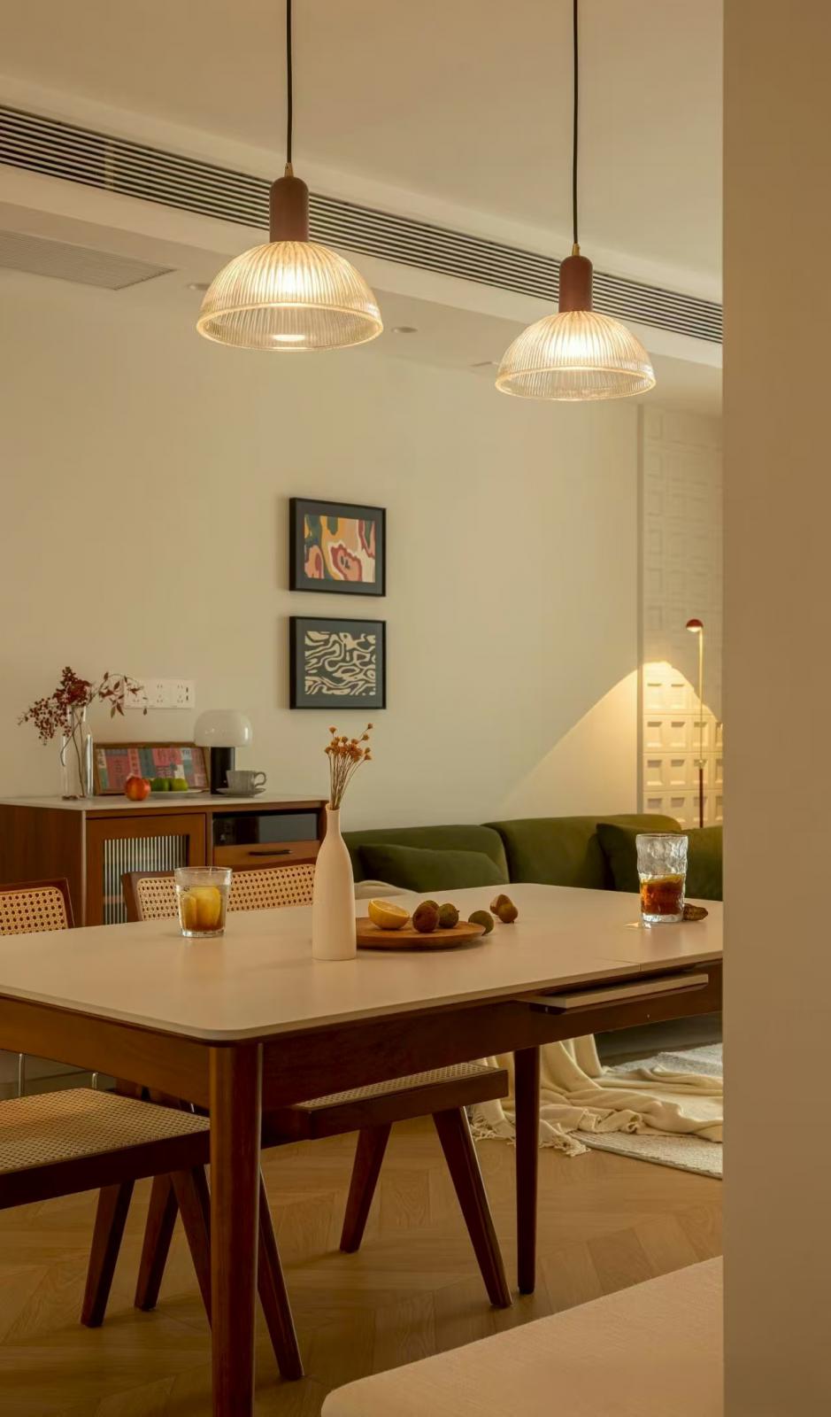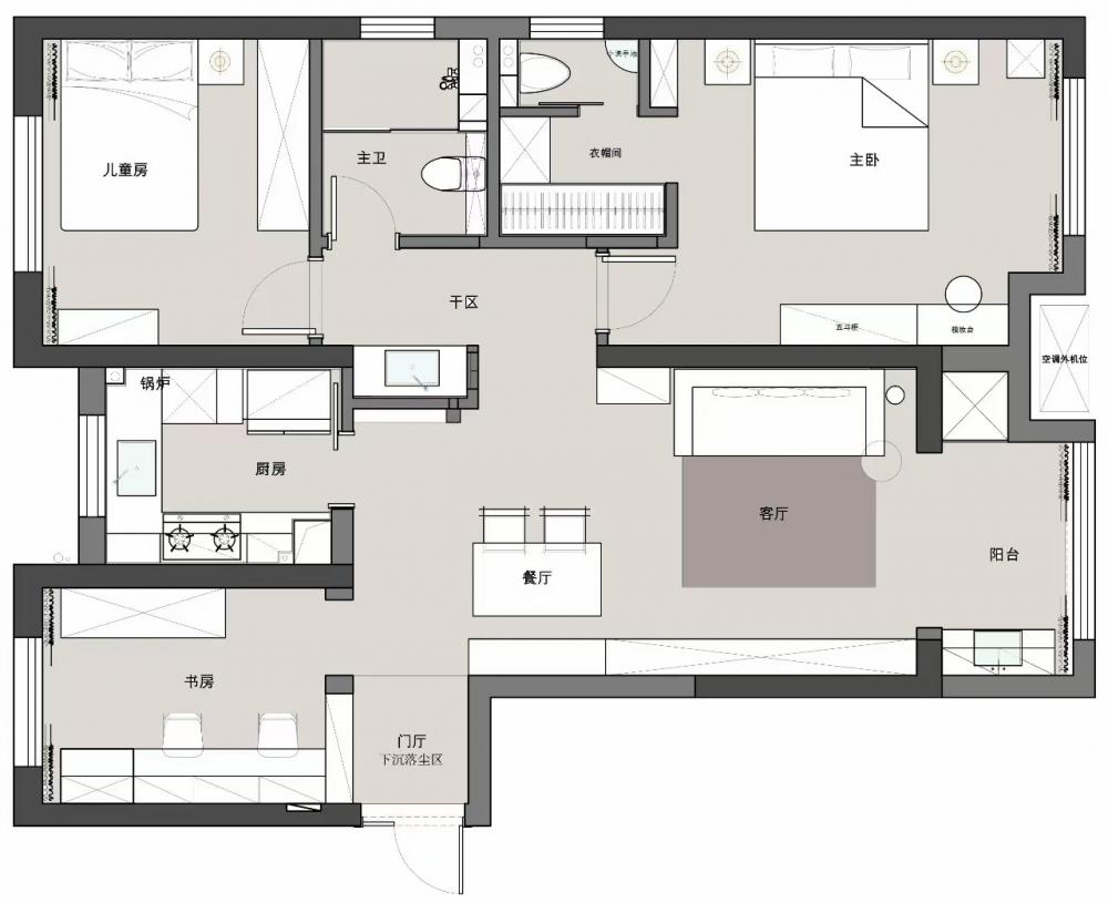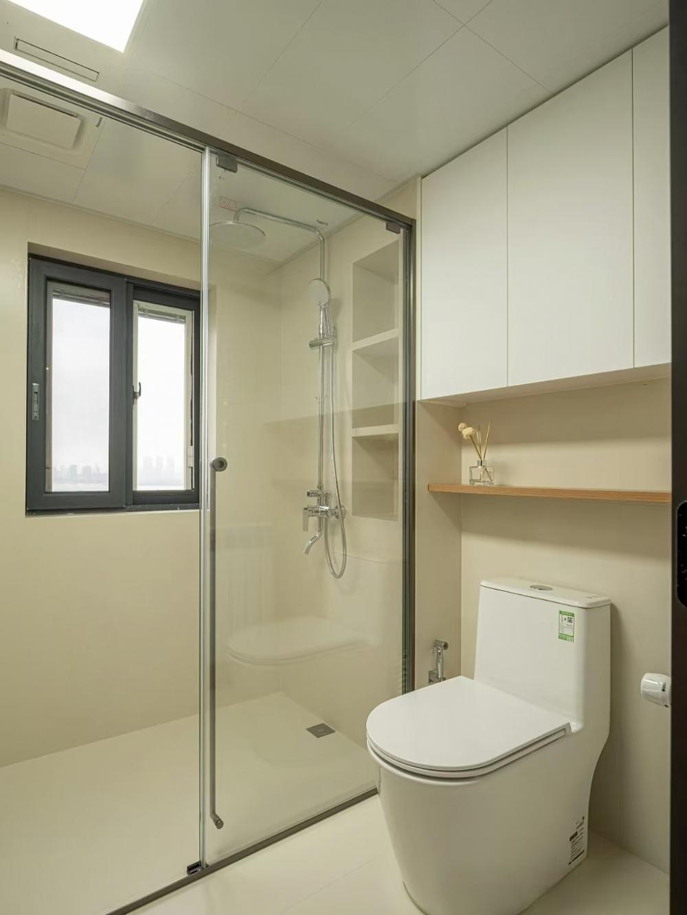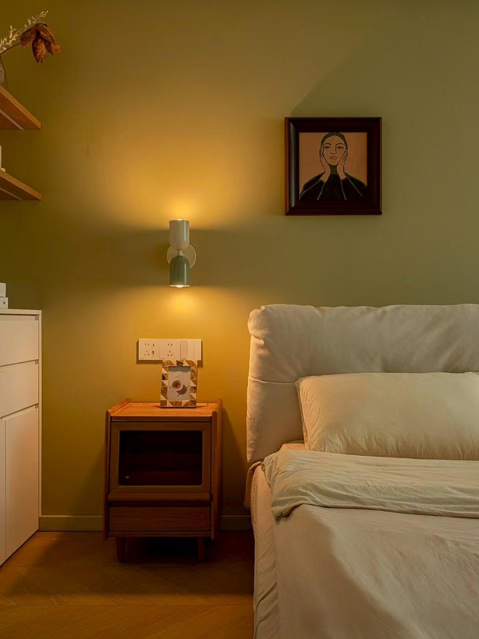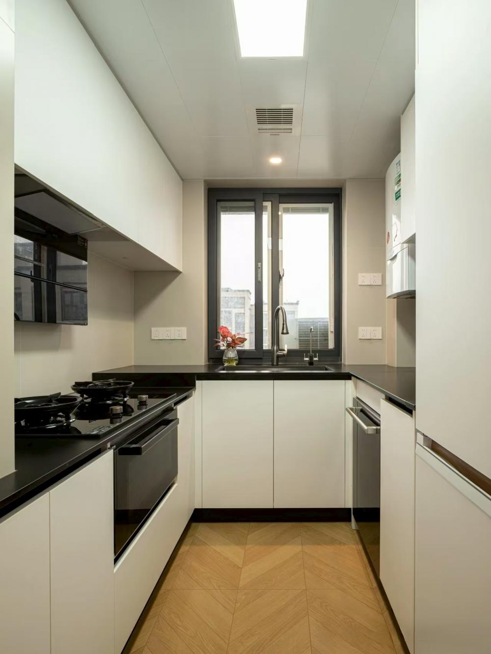 入户设置一处端景,原户型并无此面墙体,这样的设计避免了入户直视全屋,开门见景,又可以作为室内外过渡缓冲的空间。 客厅以柔润的香草色为基调,淡淡的暖调中透着清爽,带给人治愈与放松感,创造了一个令人愉悦的环境,一切看起来都很平衡。 沙发背景墙一侧加入方格造型的石膏肌理板,塑造了墙面的立体感,细腻的质感也让空间更显高级。 由整面的封闭式柜体打造出电视背景墙,视觉上更加“整齐划一”,中间镂空一处作为展示性收纳,满足多种收纳需求,内置灯带,增添了空间的层次感,给人一种灵活多变的空间效果。 门厅一侧的墙面安装了胡桃木色的琴键衣帽钩,提升立面空间的收纳利用,进门之后挂包包、钥匙之类的很方便,既美观又实用。 穿过门厅来到餐厅,干净清爽的色调给视觉感官带来顺滑的轻柔感,让安谧舒适的氛围萦绕于整屋之中。 餐桌+餐椅+卡座的组合方式,将美感与实用完美结合;胡桃木、岩板、藤编的材质相互中和,简约中透露出复古,清新又沉稳的配色为空间注入融融暖意。 由电视柜延伸定制卡座,让空间更加连贯统一,下方的地柜增添了餐厅的收纳,舒适与实用相结合。 U型厨房的设计,将部分的厨房家电嵌入至橱柜中,保障空间使用的流畅性与整洁。白色橱柜与黑色台面形成强烈对比,使空间看起来更有层次和深度,营造出简洁、时尚的厨房环境。 半开放式的书房,定制一款长书桌,原木的色调为室内空间增添一份自然、温馨的气息;搭配一把棕色的真皮办公椅,为居家办公和休闲营造出放松又惬意的栖息地。 半开放式的书房,定制一款长书桌,原木的色调为室内空间增添一份自然、温馨的气息;搭配一把棕色的真皮办公椅,为居家办公和休闲营造出放松又惬意的栖息地。 通过户型改造,在公区的走廊处设置独立洗手台,从而提高家庭的使用效率。利用玻璃砖作为墙体隔断,半透明的效果保证了私密,又不影响采光,避免了客餐厅直视的尴尬。 卧室,一种恬淡安宁的感觉铺面而来,使人感到放松和舒适。穿过拱形门洞,即可进入步入式衣帽间和主卫,通过户型改造让空间的功能划分更加合理和便捷。