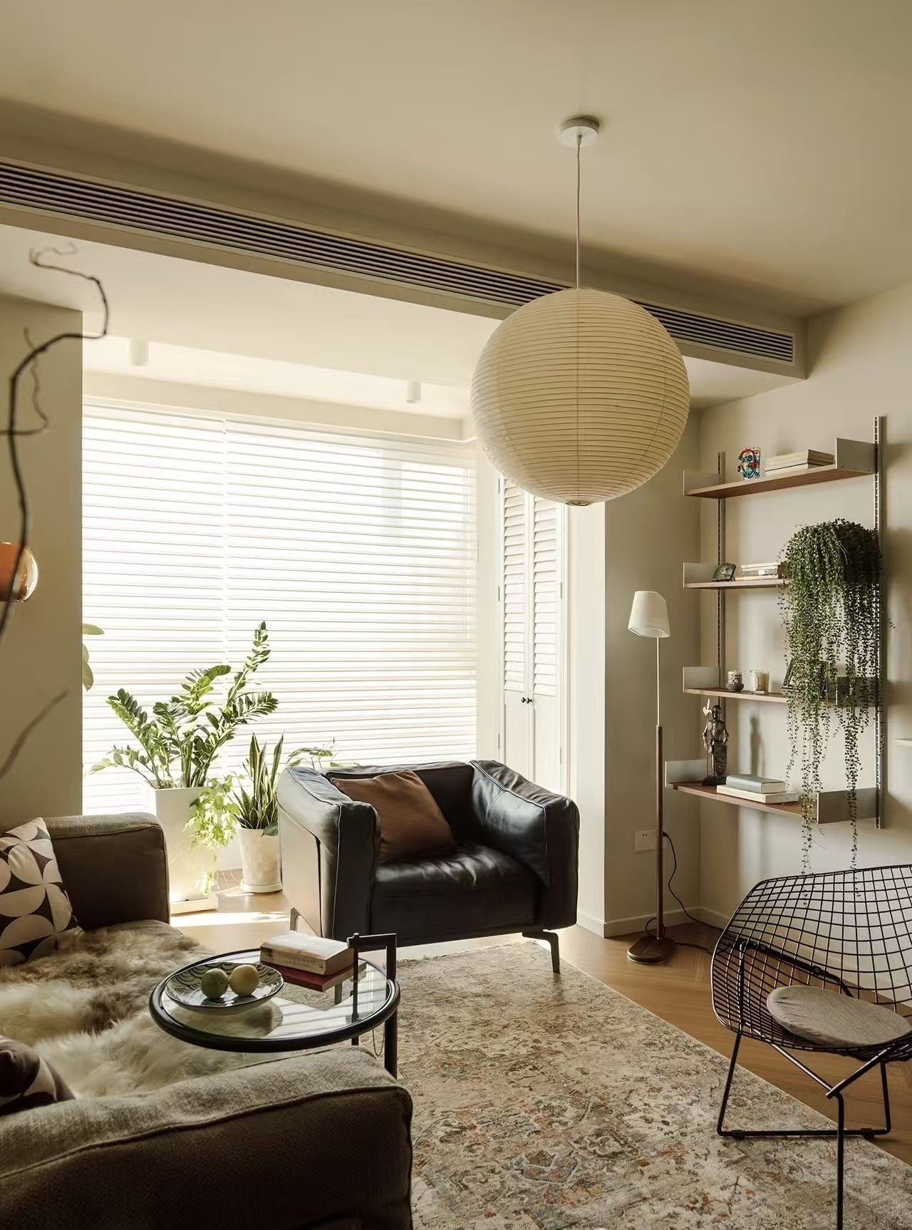 本案是一套旧房改造案例,改造后的家充满了中古风的家居氛围,还有开放式厨房、下沉式玄关、干湿分离的卫生间、挂墙收纳系统...时髦又实用,也满含业主对父母满满的爱。 玄关的尺寸做了微调,靠左边的2组柜体进深改为了600mm,可以挂衣服、放包,最右边的还是原来的800mm,无底柜的设计,大件的东西可以直接推进来。还设计了一组鞋柜,入户物品的存放都做了充分的考虑。 餐厅延续了温暖的棕褐色系,像一块滋味浓郁的栗子蛋糕~配上铜版画、陶瓷小摆件,有种穿越时光的美。餐边柜是木子挑选的,上下有充足的储物,中间是宽阔的操作台,好看又实用。 开放式的厨房,把家变成了明亮、通透、自由的整体,质感提升不止一个level!厨房收纳有藏有露。洗菜池区域的杂物,用一小段墙体,把它们藏起来。而备菜区用的是挂墙式搁架,使用方便。 客厅双人沙发是之前的旧物,布料啊,形状啊,都有了一些时间的痕迹,但正是这种「旧」,让整个家有了时光沉淀后的美感。客厅的储物主要来自展示型的半高书架、挂墙式搁板。 从主卧借走部分面积,在走道内嵌了一组通用收纳柜,柜体深度400mm,高度通顶,大量的公共用品都可以放进来。 拆掉原干区的门,遮挡洗衣机的隔断墙也用玻璃砖来透光,再加上有整面的镜柜能反射一部分光线,采光得到改善。卫生间还做了充分的收纳。 主卧没有做传统的衣柜,而是用金属衣架+外挂布帘的形式收纳衣物。床的一侧还利用斗柜补充收纳,搭配收藏的年画和瓷瓶摆,很中古的感觉。 次卧改造后的步入式衣帽间,中古味道的折叠门,效果很赞!