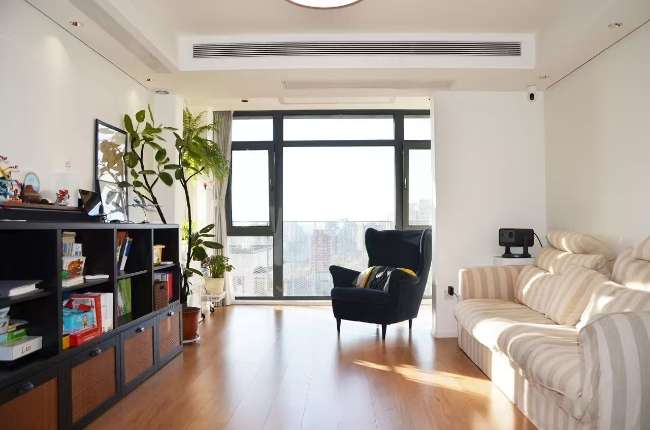 推门进入玄关,白色鞋柜,整体简洁又很实用。底部架空的位置放常穿的鞋,中间相当于一个小桌面,收纳钥匙、包包等小物品,每样东西都有属于自己的位置,这是玄关保持整洁的秘诀! 去客厅化功能,打造亲子活动功能空间。靠着阳台超大落地窗,闲暇的周末休闲小憩。 超大落地阳台,其中一角利用管道位置做了绿植角处理,垭口做了圆弧小角防止磕碰。 整体空间配色以原木色搭配白色橱柜,保持色调柔和与温暖的质感。居中式的餐桌布局可以实现双向洄游动线更加便捷。 餐桌后方给孩子预留了绘画板的空间。实现客餐厅可有效的亲子互动体验。 U型橱柜增加收纳及操作空间,对向玄关部分保留了吧台的功能。 主卧素雅的墙面,落地的采光窗,选用了深色床头来去增加一些稳重。床尾做出了内嵌的衣帽储物空间。 老人房的空间同样也是超大采光窗,乳白墙面搭配了咖色的软装配饰。 儿童房原木色小床,儿童升降桌椅,选用宜家成品书柜后期便于孩子的增长而调整。 独立式的小书房,可封闭式规划,同时还可以满足临时客房的使用。 主卫壁挂式马桶,减少了卫生清洁的死角。整体素色为主,淋浴部分选用了大理石瓷砖点缀装饰。 客卫干区部分放置家政功能柜及洗衣空间。避免两侧墙体过于压抑,左侧部分选用了半墙+玻璃转到样式遮挡,不影响美观同时增加通透性。淋浴区利用下水包管内嵌了壁龛,可便于放置洗漱用品。